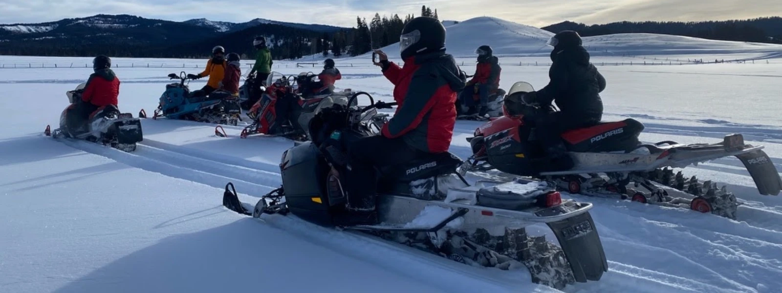 We supply everything you need: suits, helmets, mittens, and boots. Just show up with comfortable layers underneath, a hat, neck warmer, sunglasses, and sunscreen. You are welcome to bring your own snowmobile gear as well, just make sure it is designed for long rides in the cold.